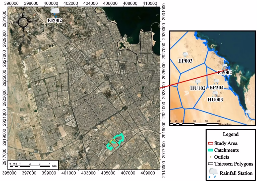 Submit a hydrological and hydrological study and a rainwater drainage study for the purpose of preparing the organizational plan for the Al-Faisaliah neighborhood, located in the central part of Dammam, Saudi Arabia.